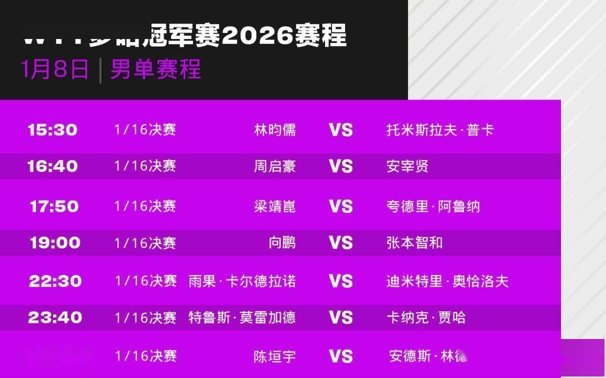 下午17点50分,梁靖崑要碰“非洲一哥”阿鲁纳。这可是场力量型的对决,阿鲁纳那招牌式的正手爆冲,单板质量极高。俩人历史交手梁靖崑2胜1负,但赢得都不轻松。 球迷肯定还记得2021年WTT世界杯,阿鲁纳曾从梁靖崑手里打出一局11比1。 梁靖崑需利用身高优势与旋转压制限制对手进攻,避免陷入力量对抗。