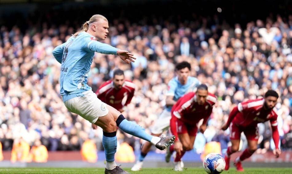比赛进行到第37分钟,奥赖利在利物浦的禁区内灵巧转身,范戴克的出脚似乎慢了半拍,裁判果断判罚点球。只见哈兰德神情冷峻地站上罚球点,目光坚定得令人心悸,一脚势大力沉的推射,骗过了经验丰富的门将,皮球应声入网。1比0,曼城率先打破僵局。