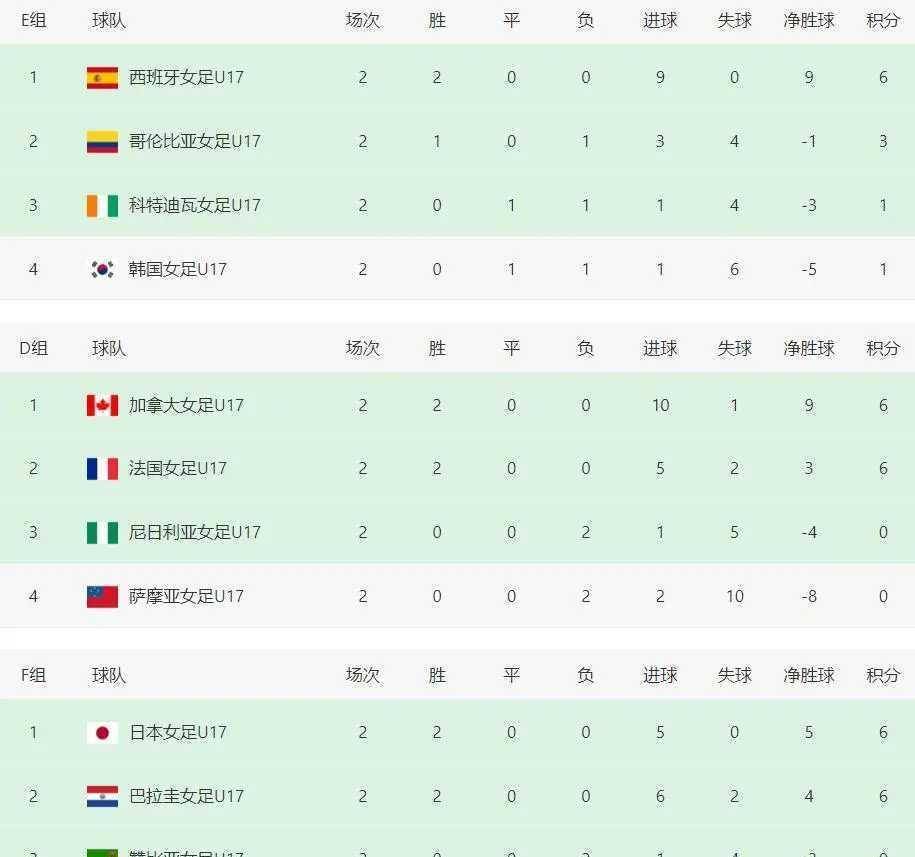 与其他小组的第三名球队相比,中国队的积分和净胜球情况占据明显优势。D组的尼日利亚队净胜球为-4,萨摩亚队更是低至-8;E组的赞比亚队净胜球为-3,新西兰队为-6。 这些球队即使末轮取胜,积分也只能达到3分,并且需要以大比分获胜才能在净胜球上超越中国队。中国队即使以0-1或0-2的小比分告负,仍有可能凭借净胜球优势晋级。