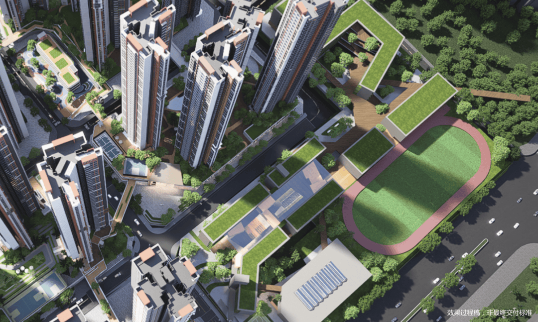 项目规划了约500米的立体城市连廊系统,串联全龄教育、精致商业、品质人居、活力运动、公园休闲等功能板块。