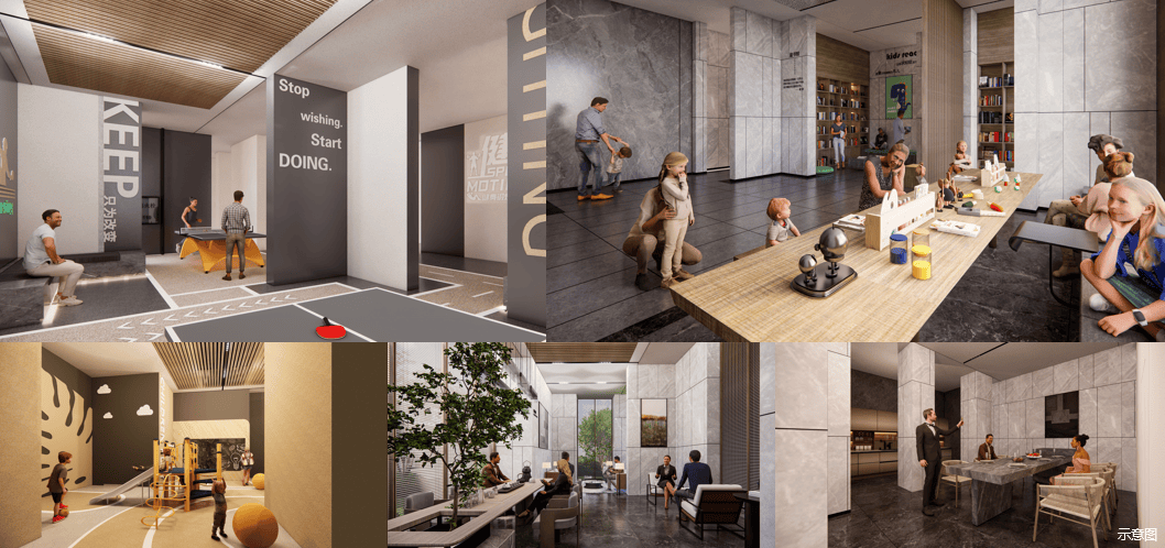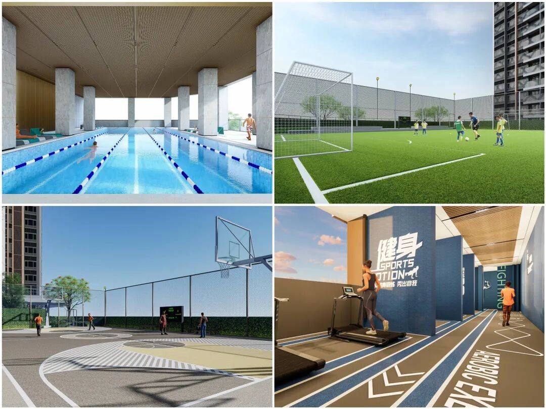 社区环境:社区内还规划有约6000㎡有氧体育活动盒子,涵盖游泳池、篮球场、mini足球场、儿童游乐场地、健身活动场地等,无论是小孩、大人还是长辈,都能在这里找到专属活动空间。